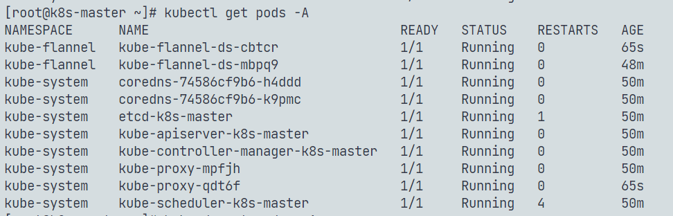 这里需要等待一段时间,再查看节点节点状态,因为需要安装kube-proxy和flannel。