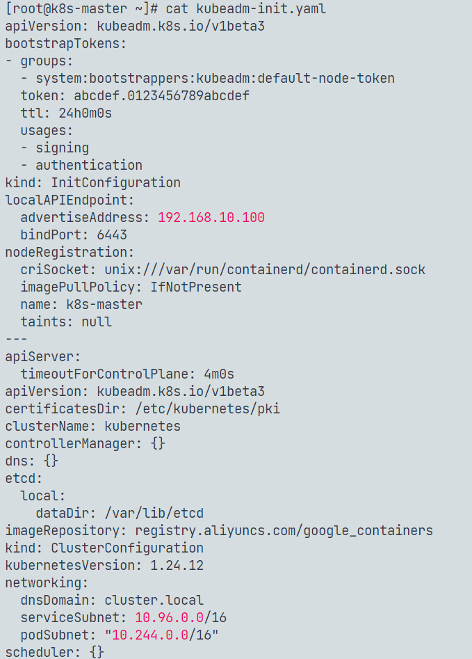 9)使用 kubeadm 初始化集群(master节点) 1、运行如下命令生成配置文件 1 kubeadm config print init-defaults > kubeadm-init.yaml